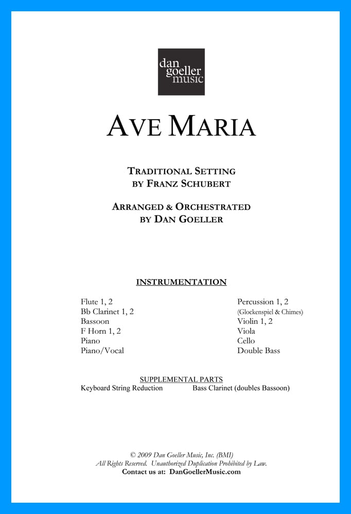 “Ave Maria” SOPRANO or TENOR SOLO with ORCHESTRA