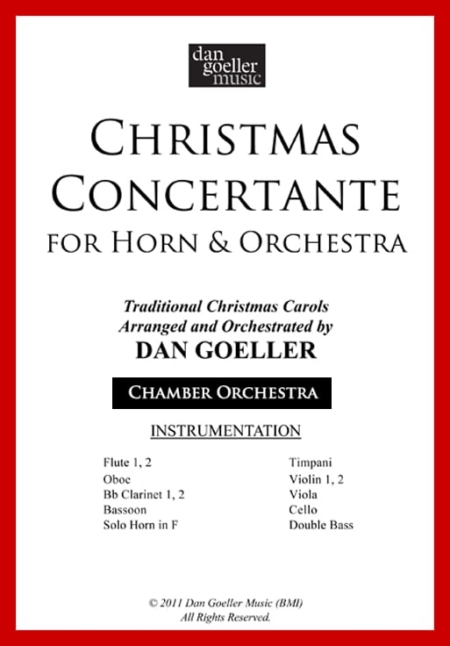 Christmas Concertante is a festive medley of Christmas carols arranged for solo horn OR solo trumpet and chamber orchestra. This jubilant setting of familiar carols is reminiscent of Mozart’s Concertos for horn and orchestra.