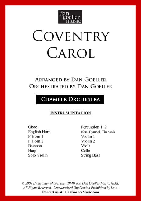 Coventry Carol is a dramatic setting of a traditional Medieval carol. This arrangement begins and ends with an emotive violin solo that symbolizes the weeping of the mothers in Bethlehem who lost their infant sons at the hands of Herod’s soldiers.