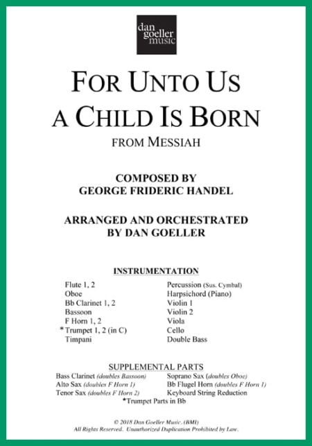 For Unto Us a Child Is Born is a festive arrangement of Handel’s Messiah chorus scored for chamber orchestra (i.e. without choir). Your orchestra musicians will love bringing this Christmas classic to life, as each section is equally featured.
