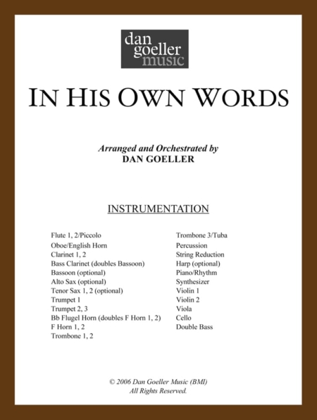 The In His Own Words overture and individual underscores are available for purchase.