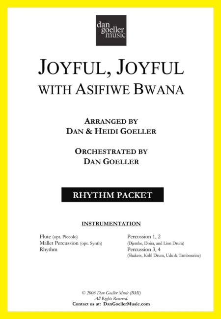 Joyful, Joyful, with Asifiwe Bwana features an African choral style accompanied by a large battery of auxilary and mallet percussion. The African-styled treatment of this classic hymn is complemented by an original Kiswahili refrain titled Asifiwe Bwana.